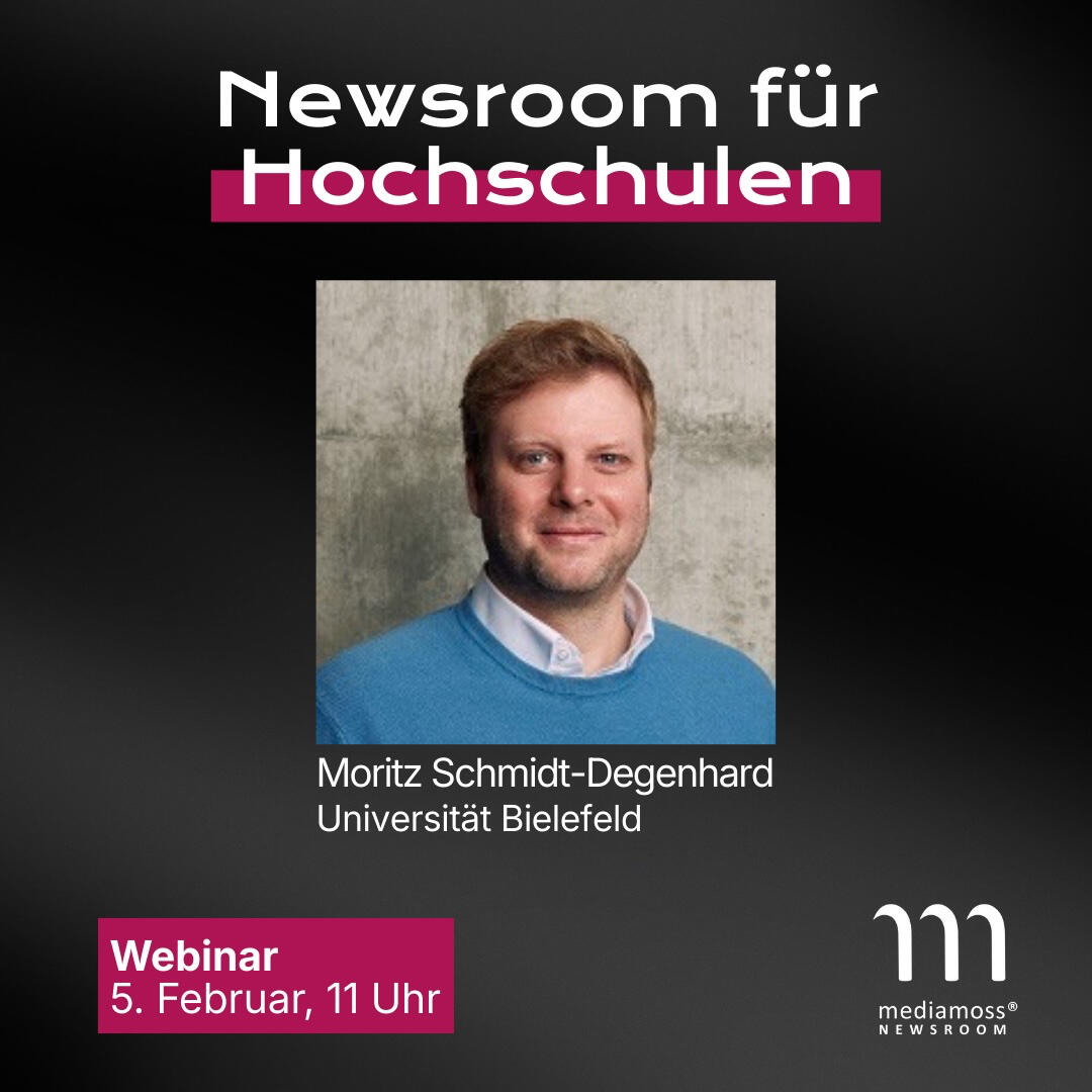Vor gerade einmal einem Jahr hat die Universität Bielefeld ihre Kommunikation auf das Corporate-Newsroom-Modell umgestellt. Das funktioniert so gut, dass das Team bei den Corporate Newsroom Awards mit Bronze ausgezeichnet wurde. Was können andere Hochschulen in Deutschland, Österreich und der Schweiz vom Beispiel Bielefeld lernen? Diese Frage wollen wir in einem kostenlosen Webinar diskutieren.Unser Gast ist Moritz Schmidt-Degenhard, Abteilungsleitung Medien, News und Wissenschaftskommunikation. Er wird berichten, welche Schritte das Referat für Kommunikation gegangen ist. Und welche Erfahrungen die Universität mit dem Corporate Newsroom bisher gesammelt hat.Das kostenlose Webinar wird begleitet von Professor Dr. Christoph Moss. Die Veranstaltung findet statt am Donnerstag, 5. Februar, von 11 bis 12 Uhr via Zoom.